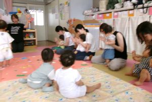 9月19日(金)に道後保育園の支援センタールームで、園の専任英語講師の土居真由美先生による育児講座を開催しました💐先生と朝のご挨拶(^_-)-☆
