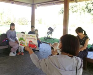 9月22日(月)に道後公園でお散歩広場を開催しました💐7,8月と暑さのため中止になりましたが、今日は日差しはあっても風が気持ちよく、秋の気配も感じられて✨砂場や遊具で遊んでいると、お友達がだんだん集まってきました(*^-^*) そろそろ広場の方へお散歩しましょうか(^^♪広場には池もありました✌