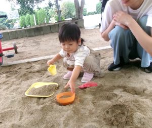 10月20日(月)に青空広場を開催しました(^^♪ 外遊びが楽しい気候になり、園庭で、シャボン玉や砂場、乗り物などで、たくさん遊びました☆彡