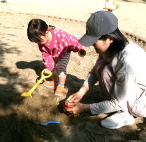 みんなでお散歩に出発するまでは、砂場やブランコ、滑り台、乗り物など好きな遊びを楽しみました✌