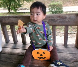 今日のおはなしは、ハロウィンに因んで、くいしんぼうおばけのこ、「ばけたくん」の絵本でした👻