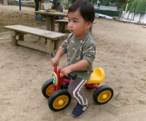園庭には、ジャングルジムもあり、乗り物もあって、楽しみがいっぱい(^^♪