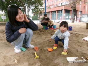 11月17日(月)は、穏やかな天気で、道後保育園の園庭でいっぱい遊びました(*^-^*)
