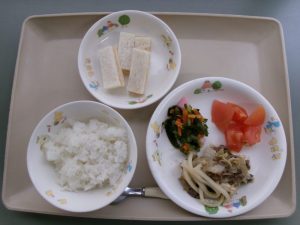 (昼食)ごはん、すきやき、わかめの酢物、トマト