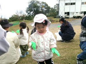 畑に入る前に、軍手をつけて、さあ、行きましょう(^_-)-☆
