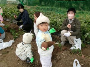 11月19日(金)に自然に触れる育児講座を開催しました(*^-^*)当グループの施設「アルムの里」の農園には、季節の野菜が育ち、収穫を体験できます。今日は、さつまいもの収穫体験です✌