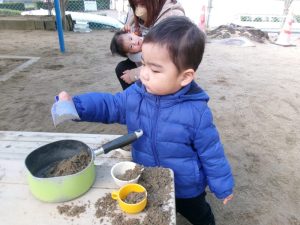 12月15日(月)に青空広場を開催しました(*^-^*)晴れて穏やかな天気で、砂場や乗り物でよく遊びました✨