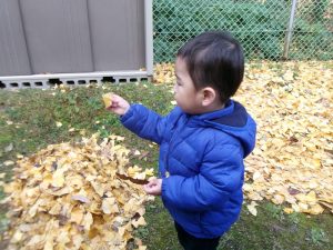 園庭や園の周りには、いろいろな木があって、春の新緑、緑深まる夏、落葉の秋と季節の移り変わりを教えてくれます☆彡今日は、どんな葉っぱがあったのかな?