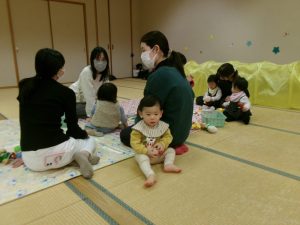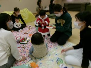 12月16日(火)に県民文化会館別館のふれあい広場で、クリスマスの雰囲気を楽しみました✨受付けをすませた親子さんは、畳敷きの会場でのびのびと好きな遊びですごしました☆彡