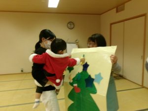 「ツリーさん」の絵本の後は、みんなでツリーに飾り付け🎉
