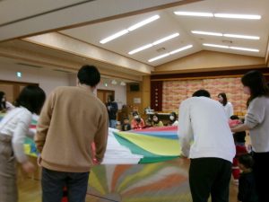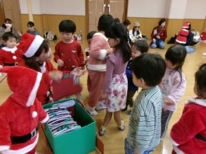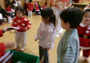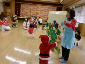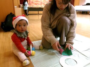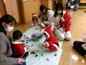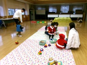 本日もご参加ありがとうございました。今月は、いろいろな会場でみんなでクリスマスシーズンを楽しみました(^_-)-☆本日で今年の広場や育児講座は終わりですが、道後保育園のセンタールームは明日まで開放しています。来園前に直通電話(089ー932-6411)までお電話をお願いいたします。新年は1月5日(月)からになります。楽しい活動を計画して、皆様のお越しをお待ちしています。