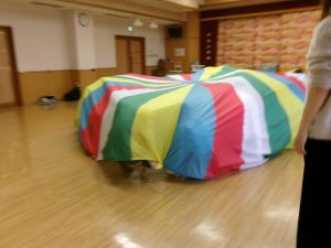 みんなで呼吸を合わせてバルーンでお家を作りましょう!!