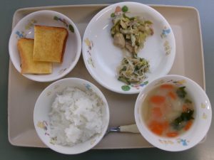 (午後おやつ)牛乳、フレンチトースト☆