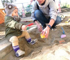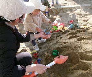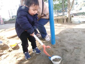 1月7日(水)は、道後保育園の園庭でいろいろ遊びました(*^-^*)まずは砂場遊びを楽しみましたね✌