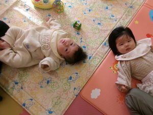 赤ちゃん同士も顔を見合わせたり、近づいたり、お友達がいることがよい刺激になったようです💖みんな、いっぱい遊んだね(^_-)-☆