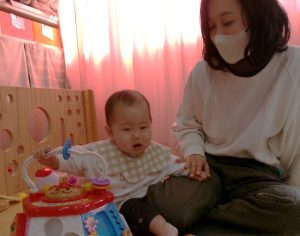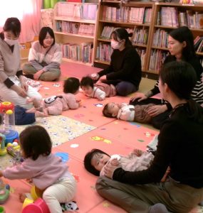 1月9日(金)の午後1時半から、道後保育園のセンタールームに赤ちゃんとママが集まって、遊びやおしゃべりを楽しみました✨