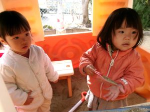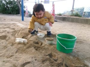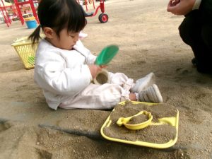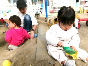 1月19日(月)に、道後保育園の園庭で遊びました(*^-^*)陽が射し込み暖かくて、砂場や乗り物など、いっぱい遊べました(^_-)-☆