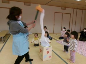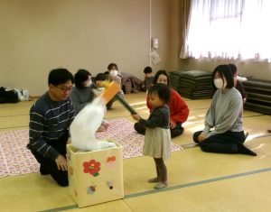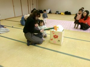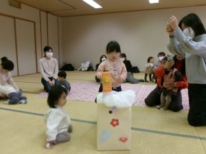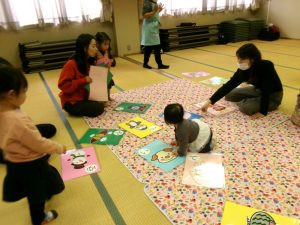 1月20日(火)に県民文化会館別館の広くて明るい畳敷きの会場に、親子さんが集まって遊びや季節の制作など楽しみました✨