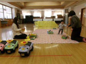 1月22日(木)は、伊台公民館でふれあい広場を開催しました(*^-^*)広くて明るい会場で、ままごとや乗り物遊びも楽しめます✌