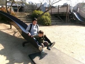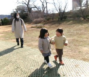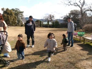 1月26日(月)に、道後公園の遊具で遊んで、一緒にお散歩を楽しむ「お散歩広場」がありました!(^^)!午前10時頃から、砂場辺りに親子さんが集まってきて、好きな遊びを楽しみました✨