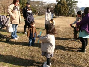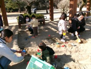 今日もご参加ありがとうございました。日差しが柔らかく、いっぱい遊べましたね❤次回は、3月23日(月)を予定しています。中止の場合は、午前9時にホームページでお知らせしますので、ご確認ください。ご予約は必要ありません。10時に担当者が砂場辺りで受け付けを始めます。皆様のご参加をお待ちしています。