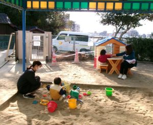 2月4日(水)は晴れて、青空広場で外遊びを楽しみました✨保育園の園庭には、砂場、大型遊具、乗り物のスペースなどいろいろな遊びの場があります!(^^)!