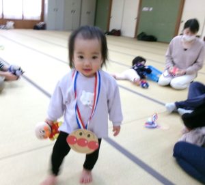 「頑張ったね♡♡」ママからメダルのプレゼント(^_-)-☆