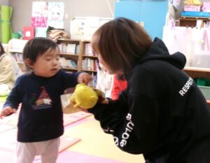 2月20日(金)に道後保育園の子育て支援センタールームで、園の専任英語講師 土居真由美先生と英語に触れあって遊ぶ育児講座を開催しました(*^-^*)