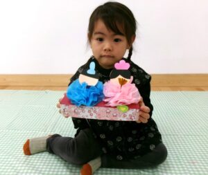 今日の制作は、「ひな人形作り」❤桃の節句のこの日にぴったりです✌ お花紙の衣装をまとったお雛様が完成💖