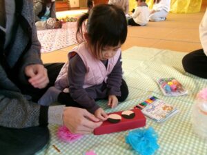 今日の制作は「ひな飾り」です✌お雛様にお花紙の衣装がよく似合ってますね❤