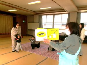 さあ、みんな集まって❣絵本を見ながら、ペンギンになって体を動かそう🙋