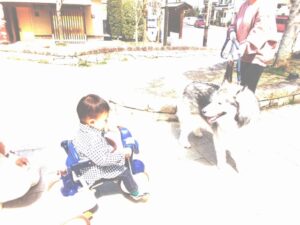 広場まで来たら、シャボン玉やあずま屋での手遊びや絵本を楽しみました🌟蝶々を追いかけたり、あちこちに春を感じて、お外遊びを満喫しました💐お散歩中の犬にも出会いました🎉