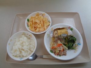 ごはん、華風炒め、こまつなのごまあえ、バナナ