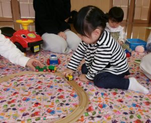 3月28日(木)に伊台公民館で親子ふれあい広場を開催しました(*^-^*)伊台公民館は広くて明るい会場です。会場までの道々、公民館の周りにも菜の花がたくさん咲いていて、とてもきれいでした(^^♪ 道後保育園の園庭の桜もほころび始めました。遊びにいらしてくださいね(*^-^*) さて広場では、受付け後、好きなおもちゃで、思う存分に遊びましたよ♡